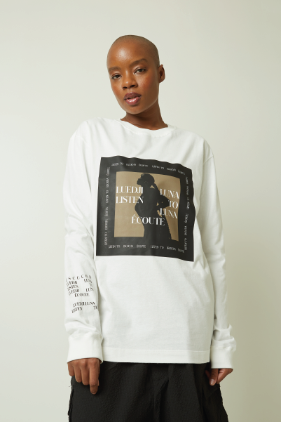 A T-SHIRT AMPLA LISTEN TO FOI FEITA EM MEIA MALHA PELETIZADA O QUE DÁ UM TOQUE AVELUDADO ESPECIAL A PEÇA.